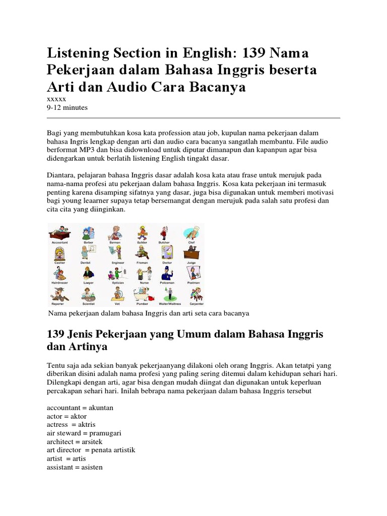 139 Nama Pekerjaan Dalam Bahasa Inggris Beserta Arti Dan Audio Cara Bacanya Pdf